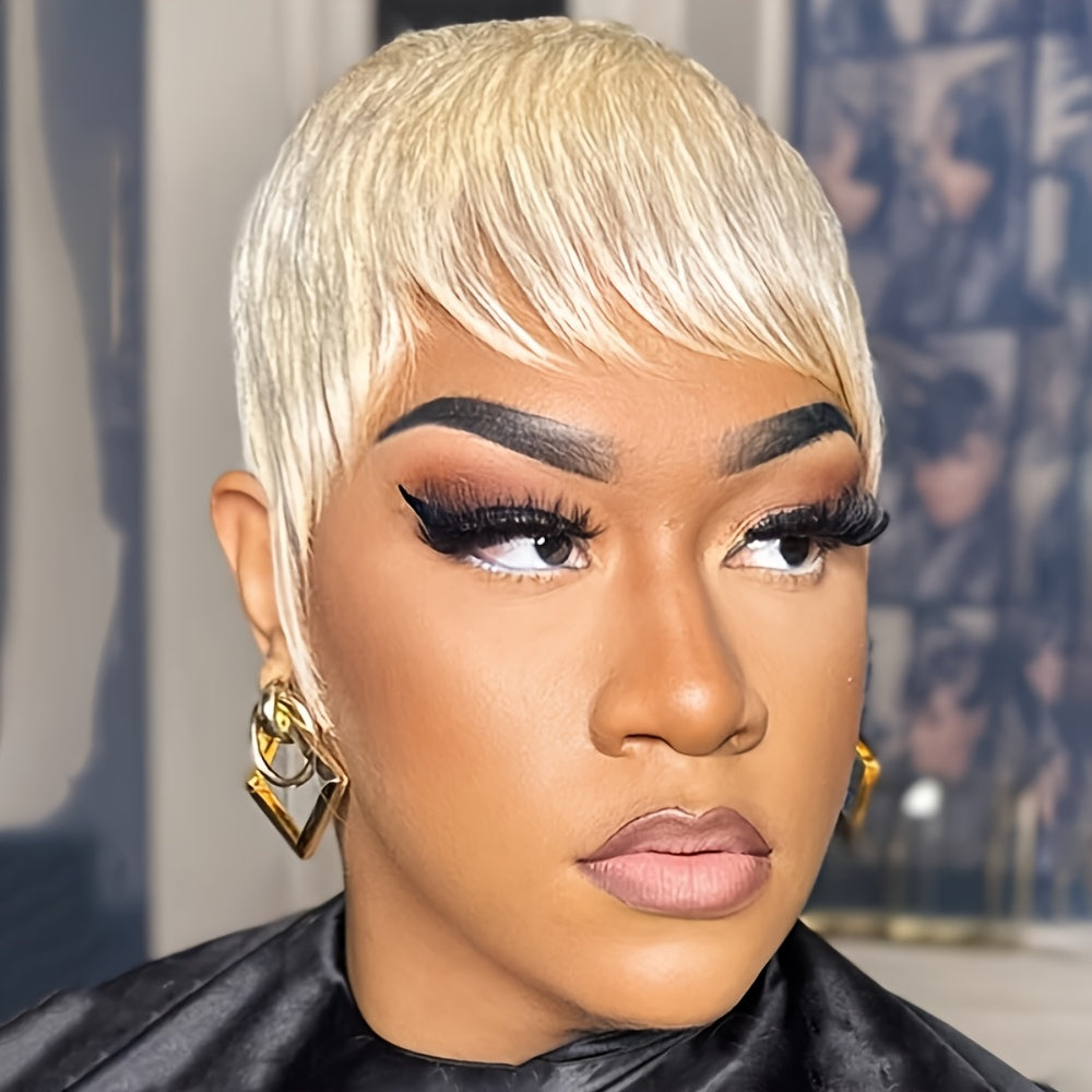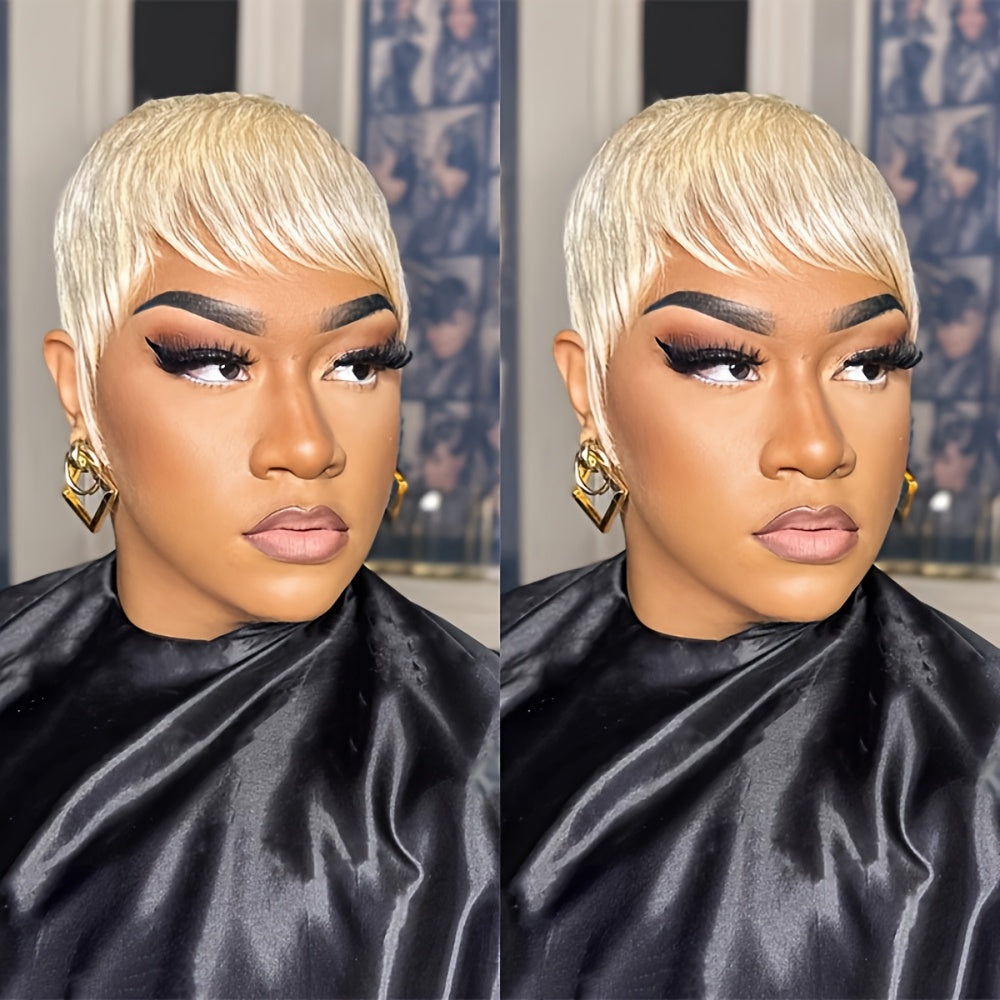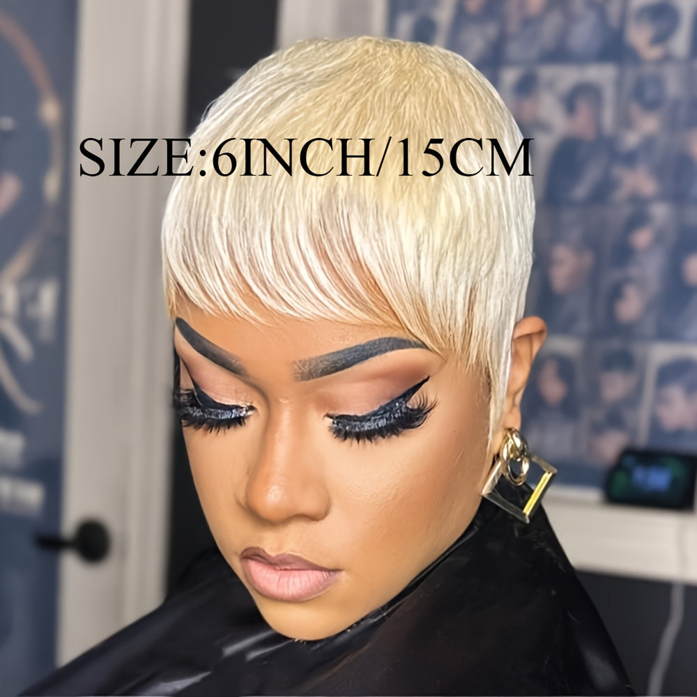 Elegant Pixie Cut Wig for Women - 6 Inch Short Straight Human Hair, 150% Density, Blonde Ombre Style, Versatile for All Ethnicities, Soft Remy Hair, Perfect for Daily Wear
